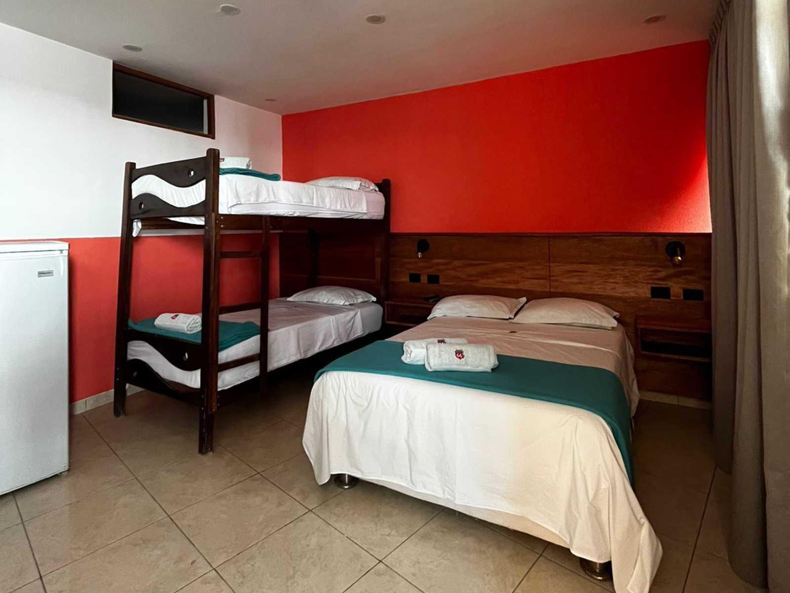 Precio por habitación, Hermosa familiar para 4 personas a pie de playa / 2 Camas matrimoniales / Jacuzzi(*) / Refrigeradora / Tv – Cable / Ventilador / Agua Caliente. Tarifas pueden variar según fechas y temporadas. Niños de 0a 5 años ingresan sin costo compartiendo cama de padres. (*)Servicios según disponibilidad