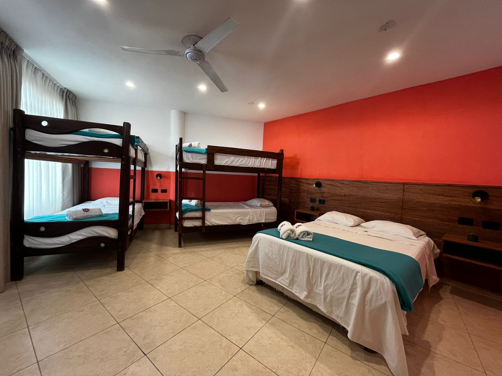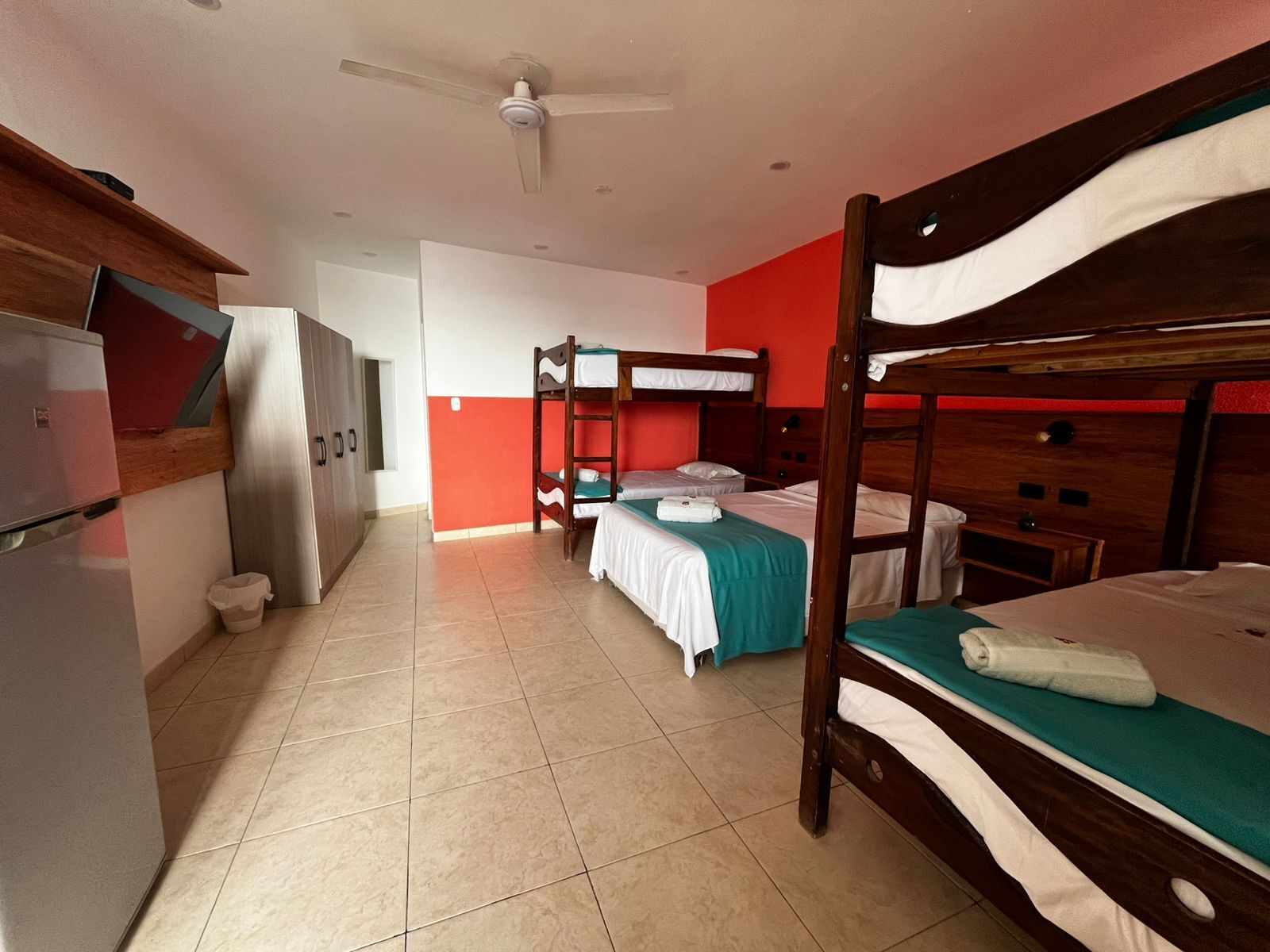 Precio por habitación, Hermosa habitación familiar para 6 personas a pie de playa / 1 matrimonial + 2 camarotes / Refrigeradora / Tv – Cable / Ventilador / Agua Caliente. Tarifas pueden variar según fechas y temporadas. Niños de 0a 5 años ingresan sin costo compartiendo cama de padres. (*)Servicios según disponibilidad
